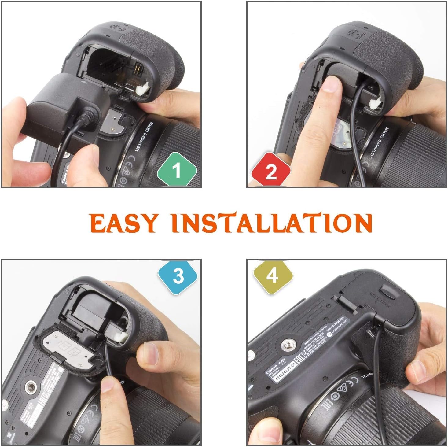 ACK-E6 AC Power Adapter Kit, LP-E6 Dummy Battery for Canon EOS R5, R6, 90D, 80D, 7D, Kimaru