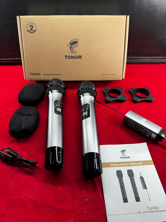 New Wireless Microphones, Metal Cordless Mic, 6.35mm receiver, 200ft, Karaoke, Party, Wedding, 2 Pk